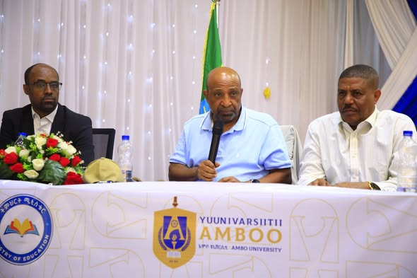 የትምህርት ሚኒስትሩ ፕሮፌሰር ብርሃኑ ነጋ እና አማካሪ ሚኒስትር ዴኤታው ፕሮፌሰር ክንደያ ገ/ ህይወት ከአምቦ ዩኒቨርሲቲ ማህበረሰብ አባላት ጋር ውይይት አድርገዋል።