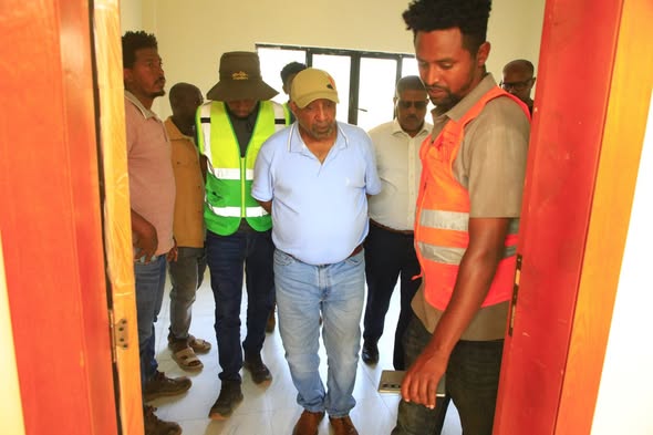 የትምህርት ሚኒስትሩ ፕሮፌሰር ብርሃኑ ነጋ እና አማካሪ ሚኒስትር ዴኤታው ፕሮፌሰር ክንደያ ገ/ህይወት የወሊሶ ፌዴራል ልዩ አዳሪ ሁለተኛ ደረጃ ትምህርት ቤት ግንባታ የደረሰበት ደረጃ ተዘዋውረው ተመልክተዋል።