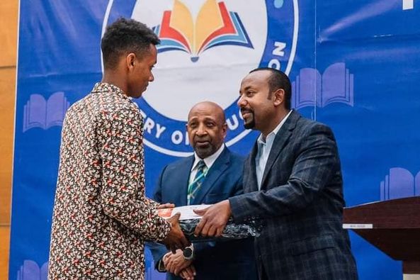 ክቡር ጠቅላይ ሚኒስትር ዶ/ር አብይ አህመድት በ2014 ዓ.ም 12ኛ ክፍል የዩኒቨርሲቲ መግቢያ ፈተና ተፈትነው ከፍተኛ ውጤት ላስመዘገቡ 273 ተማሪዎች እና 20 ትምህርት ቤቶች እውቅና ሽልማት ሰጥተዋል።